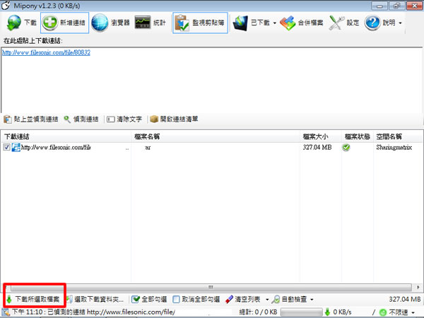 首頁電腦軟體上傳下載 Mipony 免費空間下載與管理工具(繁體中文版) Mipony 是一套用來管理免費空間檔案下載的工具軟體,能支援下載的免費空間也有超過百個,且還在陸續不斷的增加中, 比較特別的地方是它整合了瀏覽器的功能,在其介面有個 Browse and download 的選項,基本上就是瀏覽器,可以透過它瀏覽網頁,這種設計在免費空間下載工具裡是比較少見的。另外,在免輸入驗證碼的部份,也有支援像 FreakShare、Badongo、Megaupload...等,若驗證碼偵測錯誤會要求使用者輸入,不過個人覺得在免輸入驗證碼的部份,很難做到十全十美,畢竟只要免費空間的驗證規則變動,大概這類的軟體都要再修改版本或外掛插件。 🔔 不錯過任何精彩! 立即訂閱我們的 LINE 官方帳號 每次發佈新文章時,您將會第一時間收到本站文章連結通知,輕鬆掌握最新資訊! 使用 LINE 追蹤文章更新 §相關文章,還可以參閱:ArrowDL 全平台下載利器:輕鬆批量下載 YouTube、BT、FB與多站串流影片YouTubePlaylistDownloader 支援播放清單與頻道的 YouTube 影片下載工具,還能轉換格式Parabolic 讓 yt-dlp 更好用的免費影音下載工具,支援上千個網站的影音下載Hasleo Windows ISO Downloader 幫你從微軟網站下載原版 Windows ISO 檔XMusicDownloader 從音樂網站搜尋並下載歌曲的免費應用程式 如何使用 Mipony? 1.安裝完成後,打開 Mipony 的主畫面,先進行系統設定,點擊[設定],就會出現設定選項的視窗,在[Main]這個頁籤中,可以設定語言、下載速度等等,請參閱下圖。 3.若有使用付費在圖示的免費空間可以在這個頁次輸入帳號及密碼。 4.如果要下載的話,只要去複製下載點,就會自動擷取進來,如果要開始下載則是點擊左下角的[下載所選取的檔案],在 檔案狀態 若是顯示綠勾,表示載點還存活。 5.基本上在我測試 FreakShare 時,有時要輸入,有時也不需要輸入驗證碼,不能說一定免輸入。 Mipony版本:3.1.1語言:繁體中文性質:免費適用:Windows官方網站:https://mipony.net/en/下載:按我下載