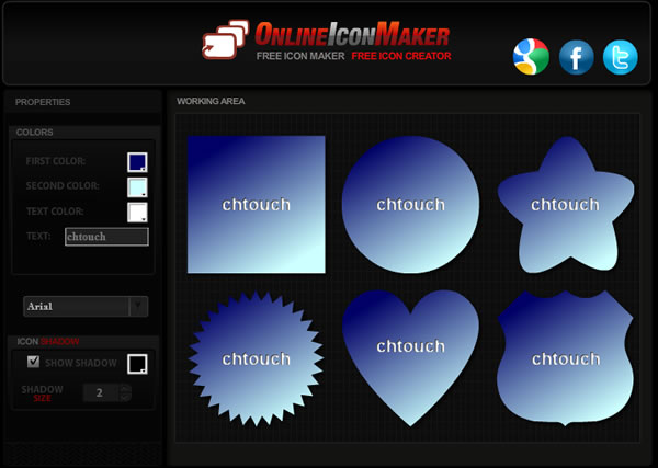 首頁免費素材圖像圖示 OnlineIconMaker 線上免費圖示產生器 OnlineIconMaker 是一個線上免費的圖示產生器,只需要幾個步驟,就可產生包含有漸層色的圖示,且所產生的圖示尺寸從 16x16、32x32、64x64、128x128 到 200x200 的 PNG 圖檔格式,下載時免註冊,一次就讓你全部下載回去。 🔔 不錯過任何精彩! 立即訂閱我們的 LINE 官方帳號 每次發佈新文章時,您將會第一時間收到本站文章連結通知,輕鬆掌握最新資訊! 使用 LINE 追蹤文章更新 §相關文章,還可以參閱:精心打造的等距美學:Isocons 免費圖示資源庫,CC BY 4.0 授權Map-It:日本地圖素材的免費寶庫,從全國到市町村一網打盡PICaboo! 日系可愛免費向量圖素材庫:設計師必收的創作寶庫GAHAG:日本免費圖庫新選擇,結合アハ體驗互動遊戲的創意素材平台illust STAMPO:日式風格的免費插圖素材網站 如何使用 OnlineIconMaker ? 1.進入 OnlineIconMaker 網站後,點擊[START Online Icon Maker] 2.接下來就會進入圖示製作頁面,可在 COLORS 處來的 TEXT 來輸入圖示所要顯示的文字並調整圖示、文字的顏色...等等。 3.若需要使用漸層色可在 COLORS 的 FIRST 及 SECOND COLOR 來調整,調整好之後,點擊任一圖示,便可下載。 4.下載後解壓縮,可得到各式尺寸的 PNG 圖示。 OnlineIconMaker網站網址:http://www.onlineiconmaker.com/