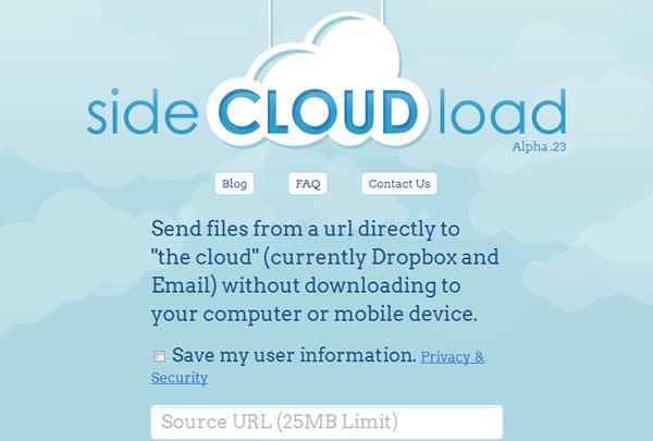 首頁線上工具雲端儲存 sideCLOUDload 免費代抓網路上的檔案,幫你直接存到 Dropbox 雲端硬碟或 EMail 到你的電子郵件信箱 Dropbox 雲端硬碟是很多人很喜歡使用的網路硬碟,除了可以跟自己電腦裡的檔案進行同步之外,已產生的免費相關應用也陸續推出,例如 Views.fm 透過Dropbox 分享你的檔案,支援外連 與 DropTunes 將Dropbox 延伸成遠端音樂播放器,而 sideCLOUDload 所推出的免費應用,則是免費幫你代抓網路上的檔案,直接存到 Dropbox 雲端硬碟,當進行檔案同步的時候,就可以輕輕鬆鬆地取得這些檔案。 🔔 不錯過任何精彩! 立即訂閱我們的 LINE 官方帳號 每次發佈新文章時,您將會第一時間收到本站文章連結通知,輕鬆掌握最新資訊! 使用 LINE 追蹤文章更新 §相關文章,還可以參閱:「免費圖片空間」Freeimage.host 讓您輕鬆上傳圖片並獲得分享連結LinkPicture 免費圖床上傳產生 URL 外連網址 圖片可直接檢視或內嵌到網頁imghut 免費圖片分享空間 可直接嵌入網頁使用Archive Forever 輸入網址就可以將網頁或網頁截圖永久儲存在區塊鏈上ZoomHub 線上免費圖片分享空間 可內嵌到其它網頁 如何使用 sideCLOUDload ? 1.使用瀏覽器進入 sideCLOUDload 網站後,例如你想下載 Dropbox 最新版,填入 http://cdn.dropbox.com/Dropbox%201.1.35.exe 網址後,選擇要下載的目的地 Dropbox 或 EMail ,再填入所需的相關資料後即可幫你帶抓網路上的檔案。 Source URL:要下載檔案的原始網址(單檔有 25MB的限制) - http://cdn.dropbox.com/Dropbox%201.1.35.exe Dropbox Email:你的 Dropbox 帳號 Dropbox Password:你的 Dropbox 密碼 Dropbox Filename:儲存的檔名 Directory:檔案預設存放路徑會是在 sideCLOUDload 的目錄 2.填妥相關資料後,點擊[submit],稍後便會得到其通知已下載完成,便可進到 Dropbox 空間來查看。 sideCLOUDload網站網址:https://www.sidecloudload.com/