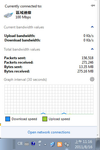 首頁電腦軟體網路應用 Network Activity Indicator 即時顯示網路流量(免安裝) 在 Windows 7 的作業系統裡,當點擊右下角的網路圖示時並不會顯示即時的上傳與下載的網路流量,這對於想要即時得知目前網路流量有點不方便,且該圖示為靜態圖示,並不會隨通過的網路流量而有燈號的閃爍,若對網路流量很在乎時,可以來試試這套免費又免安裝的 Network Activity Indicator 網路工具,可直接在工作列的通知區域上直接用燈號顯示網路狀態,若想要知道得更詳細點,也可以透過圖表的方式顯示最近 30秒內的網路活動情形。 🔔 不錯過任何精彩! 立即訂閱我們的 LINE 官方帳號 每次發佈新文章時,您將會第一時間收到本站文章連結通知,輕鬆掌握最新資訊! 使用 LINE 追蹤文章更新 §相關文章,還可以參閱:Bright VPN 提供覆蓋全球60多個位置的免費 VPN服務WhoisThisDomain 網域名稱註冊資料免費查詢工具PingInfoView 可自訂時間 PING 自訂的 IP 或網域並發出通知Wireless Network Watcher 找出有哪些裝置正在連你的無線網路IPNetInfo IP 資訊查詢工具 如何使用Network Activity Indicator? 1.下載、解壓縮後,執行「ActivityIndicator.exe 」便可開啟,無須安裝。 2.開啟後會在工作列的通知圖示區域內,產生 Network Activity Indicator 的圖示。 3.點擊該圖示便會顯示詳細的流量報告與最近 30秒的流量圖。 Network Activity Indicator版本:0.9語言:英文性質:免費適用:Windows官方網站:https://www.deviantart.com/laushung/art/Network-Activity-Indicator-205863269下載:按我前往官網下載