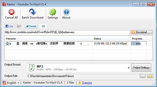 Youtube 中有很多好看的影片,當然也包含很多歌手的 MV、電影精彩對白片段等等,因此,若是想要取出 Youtube 影片中的聲音時,可以來試試 Kastor Youtube To Mp3 這套免費工具,只需將 Youtube 影片網址複製/貼上,選擇所要的聲音格式(可轉出為 MP3、WMA 或 AAC),按下 Download ,稍後下,一首 MP3 便會儲存到自己的電腦裡,相當方便,另外,若有多個影片網址時,Kastor Youtube To Mp3 也支援批量轉出。