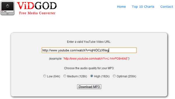首頁線上工具影音視聽 Vidgod 實用的 Youtube 轉 MP3 免費服務 Vidgod 算是一個簡單又好用的 Youtube 轉 MP3 免費服務,只要給出 Youtube 的影片網址,選擇所提供的 64K、128K、192K 或 256K 的 MP3 品質,稍後下,便可將所選下載回自己的電腦裡且無須註冊。 🔔 不錯過任何精彩! 立即訂閱我們的 LINE 官方帳號 每次發佈新文章時,您將會第一時間收到本站文章連結通知,輕鬆掌握最新資訊! 使用 LINE 追蹤文章更新 §相關文章,還可以參閱:sound&go 耳機測試工具:免安裝測左右聲道、頻率響應Veo 3.1「材料轉影片」功能升級:支援直式影片與 4K 畫質來了!OpenAI Sora Android 版上線 Google Play,台灣用戶同步開放Google 親授 Veo 3.1 用電影語言與音效設計打造完美 AI 影片Sora Watermarker:一鍵為影片加上 OpenAI Sora 浮水印 如何使用 Vidgod? 1.使瀏覽器進入 Vidgod 網站後,將要下載的 Youtube 影片網址複製,貼到 URL 輸入框中,選擇所要的 MP3 音樂品質後,點擊[Download MP3]。 2.稍後下,便會給出下載網址,點擊上方的[Click here]便可下載。 Vidgod網站網址:http://www.vidgod.com/