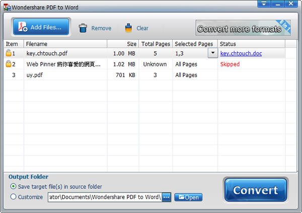 Wondershare PDF to Word Converter free 確實是一套不錯的工具,且還是免費又支援中文,可多加利用!