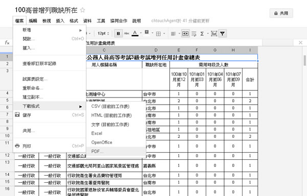 首頁操作技巧Google 文件 如何使用「Google DOC」來轉換 Word、PowerPoint 與 Excel 成為 PDF 文件? 「Google 文件」是 Google 深受大家愛用的項目之一,除了讓你可以輕鬆的在線上開啟閱讀、建立、編輯、與他人即時共用與合作編輯,包括像是微軟的 Word、PowerPoint 與 Excel 文件等,這對於不管有無使用微軟 Office 系列的人來說,都是相當方便工具,另外,若是要將這些編輯好的文件轉換成 PDF 格式時,利用「Google DOC」將會更方便,且完全支援中文。 🔔 不錯過任何精彩! 立即訂閱我們的 LINE 官方帳號 每次發佈新文章時,您將會第一時間收到本站文章連結通知,輕鬆掌握最新資訊! 使用 LINE 追蹤文章更新 §相關文章,還可以參閱:「Google 文件」如何輸入分數?「Google 文件」共用文件如果有被編輯過或加入註解如何收到通知?「Google 文件」如何使用智慧型方塊插入 Google 地圖?「Google 文件」段落如何縮排?如何在「Google 文件」編輯電子郵件草稿後直接使用 GMail 預覽及發送? 如何使用 「Google DOC」來轉換 Word、PowerPoint 與 Excel 成為 PDF 文件? 1.登入 Google 後,選擇「文件」,點擊[上載]來選擇要轉檔的檔案。 2.點擊要轉換的文件,開啟後,點擊[檔案] > [下載格式] >選擇要下載的格式[PDF]。 3.接下來選擇要匯出成 PDF 文件的選項,設定好之後,點擊[確定],便會自動下載回自己的電腦裡。 4.使用 PDF 閱讀器開啟。