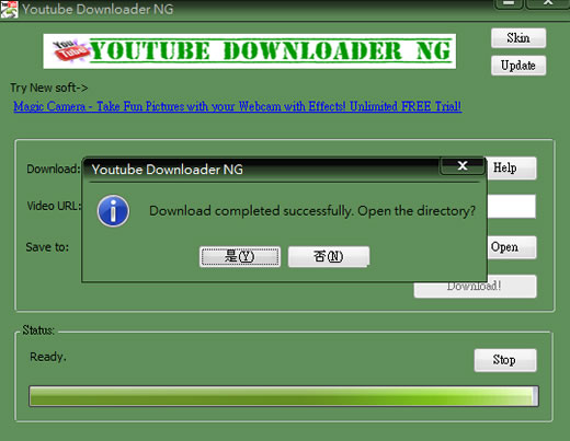首頁電腦軟體上傳下載 Youtube Downloader NG - Youtube 影片免費下載工具 想要下載 Youtube 中自己所喜愛的影片時,可以來試試這套操作簡單又可選擇影片格式(MP4、FLV)及品質(Full HD、HD、HQ、Normal Quality、3GP)的 Youtube Downloader NG 免費下載工具,只要將 Youtube 影片網址複製/貼上,再來選擇要下載的品質後,點擊[Download!]便可下載回自己的電腦裡,相當方便。 🔔 不錯過任何精彩! 立即訂閱我們的 LINE 官方帳號 每次發佈新文章時,您將會第一時間收到本站文章連結通知,輕鬆掌握最新資訊! 使用 LINE 追蹤文章更新 §相關文章,還可以參閱:ArrowDL 全平台下載利器:輕鬆批量下載 YouTube、BT、FB與多站串流影片YouTubePlaylistDownloader 支援播放清單與頻道的 YouTube 影片下載工具,還能轉換格式Parabolic 讓 yt-dlp 更好用的免費影音下載工具,支援上千個網站的影音下載Hasleo Windows ISO Downloader 幫你從微軟網站下載原版 Windows ISO 檔XMusicDownloader 從音樂網站搜尋並下載歌曲的免費應用程式 如何使用 Youtube Downloader NG? 1.安裝完成後,開啟 Youtube Downloader NG 工具,在 Download 欄位處,選擇要下載的影片品質,其後均有註明(如果有提供該影片品質)。 2.再來將複製好的 Youtube 影片網址貼到 video url 欄位處;在 Save to 選擇下載後影片的儲存路徑後,點擊[Download!]便可下載回自己的電腦裡。 下載完成後會有提示,可點擊[是]來直接開啟下載後影片所儲存的位置。 Youtube Downloader NG版本:3.0語言:英文性質:免費適用:Windows官方網站:http://youtubedownloaderng.com/下載:按我下載