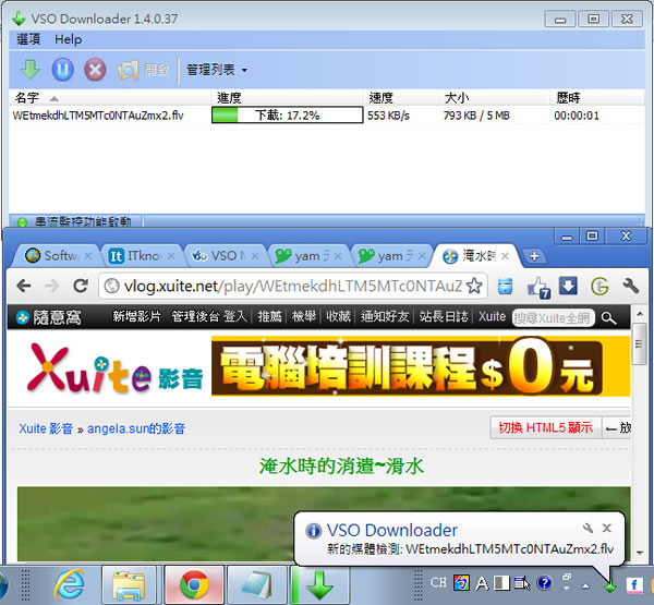首頁電腦軟體上傳下載 VSO Downloader 免費下載千個影音網站的影片或音樂(繁體中文版) 多數大型的影音網站都是使用標準的 RTMP 通訊協定來製作,而 VSO Downloader 則是專門可偵測電腦正在使用 RTMP 串流影音播放中的影片或音樂並自動下載的超實用的免費工具,支援的網站相當多,官網 也列出千個所支援的影音網站,還在找影音網站專屬的下載器嗎?快來試試 VSO Downloader 這套免費又好用又是繁體中文的超實用下載工具。 🔔 不錯過任何精彩! 立即訂閱我們的 LINE 官方帳號 每次發佈新文章時,您將會第一時間收到本站文章連結通知,輕鬆掌握最新資訊! 使用 LINE 追蹤文章更新 §相關文章,還可以參閱:ArrowDL 全平台下載利器:輕鬆批量下載 YouTube、BT、FB與多站串流影片YouTubePlaylistDownloader 支援播放清單與頻道的 YouTube 影片下載工具,還能轉換格式Parabolic 讓 yt-dlp 更好用的免費影音下載工具,支援上千個網站的影音下載Hasleo Windows ISO Downloader 幫你從微軟網站下載原版 Windows ISO 檔XMusicDownloader 從音樂網站搜尋並下載歌曲的免費應用程式 如何使用 VSO Downloader ? 1.下載安裝好並開啟 VSO Downloader 後,會在系統工作列的通知區域出現其圖示,當偵測到影音網站正在使用 RTMP 播放的音樂或影片時,便會出現下載提示,下圖是正在使用中華電信- 隨意窩 xuite 影音。 其他支援串流的影音網站均是同樣操作,下載完成後同樣會出現提示。 3. 下載後的影片或音樂,可點擊滑鼠右鍵來開啟所在的資料夾,檔案可使用影音播放器即可播放。 VSO Downloader版本:5.1.1.70語言:英文性質:免費適用:Windows官方網站:https://www.vso-software.fr/下載:按我下載