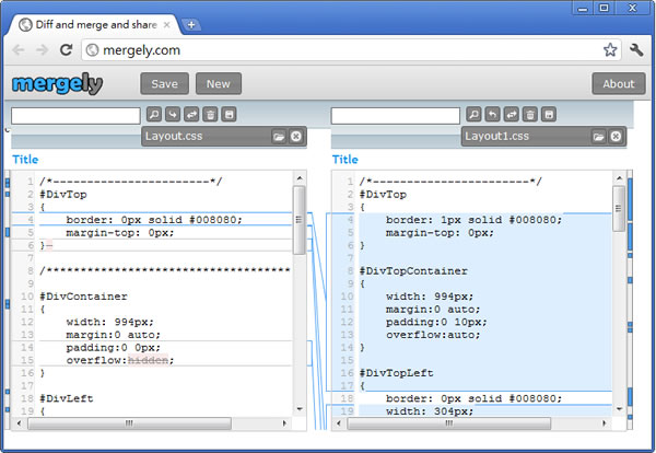 首頁線上工具生產力工具 mergely.com 文件內容線上免費比對、同步工具 想要找出兩份文件中的內容有何不同,若是用人工比對,內容短也就算了,若是內容很長的文件,尤其是程式設計師,若要比對前後版本相同文件,找出修改過的地方,那可就是件很累人的工作,如何才能找出兩份文件中內容的差異,並將差異同步,可以來試試 mergely.com 這個線上的免費工具,比對時,會將不同處以高亮顏色標出,讓你一目瞭然。 🔔 不錯過任何精彩! 立即訂閱我們的 LINE 官方帳號 每次發佈新文章時,您將會第一時間收到本站文章連結通知,輕鬆掌握最新資訊! 使用 LINE 追蹤文章更新 §相關文章,還可以參閱:OpenAI 在 ChatGPT 中測試廣告|哪些帳戶受影響、廣告運作原則一次看在蝦皮當賣家,商品如何定價?手續費、免運、稅金怎麼算?蝦皮手續費計算機幫你全搞定!Google AI Plus 降到 260 元對決 ChatGPT Go!誰的功能更值得訂閱?ChatGPT Go 月付 290 元值得嗎?免費版、Plus 完整比較用 AI 做出的電影,YouTube 就看得到!一起來欣賞這部贏得百萬美元的突尼西亞短片《Lily》 如何使用 mergely.com 來比對文件內容,找出差異? 1.使用瀏覽器進入 mergely.com 網站後,可將要比對的內容使用複製/貼上到左右兩個輸入框,或是點擊 No file selected 旁的開啟檔案圖示,來選擇電腦中要比對的文件。 2.比對若出現差異,可使用其所提供的同步工具來消除。 mergely.com網站網址:http://mergely.com/