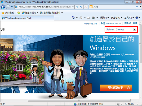 Windows Experience Pack 是微軟眾多網站中提供線上製作桌面背景的一個服務,它可以幫Windows 7 建立有你在內的造型人物與螢幕保護程式桌布及並建立一個有你在內的Windows Live Messenger頭像(其實是同一個),類似像阿凡達Avatar 變臉器的操作方式,讓你可以將自己的照片上傳,並挑選你喜歡的背景圖片,進行合成,最後幫你製作成一個安裝執行檔,方便安裝。(此桌面背景是針對 Windows 7 最佳化,但也能支援 Windows XP 與 Windows Vista),想打造個性化的背景及頭像的朋友,可以來試試!