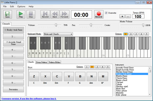 首頁電腦軟體影音視聽 Little Piano 免費虛擬鋼琴幫助你創作音樂 想在電腦上創作音樂,可以來試試 Little Piano 這套免費的音樂創作工具,Little Piano 提供超過 127種的樂器聲音與可建立的鼓聲節拍功能,並可為自己的音樂創作提供 10個錄音頻道,建立 MIDI 格式的聲音檔案,有興趣的朋友可以來試試。 🔔 不錯過任何精彩! 立即訂閱我們的 LINE 官方帳號 每次發佈新文章時,您將會第一時間收到本站文章連結通知,輕鬆掌握最新資訊! 使用 LINE 追蹤文章更新 §相關文章,還可以參閱:超實用免費軟體!DCP-o-matic 讓你的影片變成電影院 DCP 播放格式語音轉文字免費工具 AsrTools 輕鬆搞定字幕、筆記或歌詞整理免費的 PotPlayer 開始搭載 Whisper AI,讓你即時生成字幕與翻譯,外語影片輕鬆看SpleeterGUI:簡單易用的 AI 音軌分離免費開源工具如何使用 Microsoft Clipchamp 自動產生影片字幕? Little Piano介紹 1.進行安裝時,預設會安裝 Babylon 的工具列、並改變預設的搜尋引擎與瀏覽器的預設首頁,若不想安裝,須注意。 2.開啟主介面後,上方提供播放與錄音控制按鈕,並可調節 Tempo 的速度;在 Channels 則提供不同的頻道可在 Instrument 處,來選擇不同的樂器聲音。 3.Keyboard Mode 與 Octave 則可選擇不同的虛擬鍵盤模式。 4.在 Chords 頁籤,可選擇和旋。 5.Drum Pattern 頁籤,則可選擇不同的音樂類型,例如藍調、嘻哈或搖滾...等等。 6.在 Pattern Editor 頁籤,則可編輯通用的節拍。 7.在最後,則可匯出你的創作成 MIDI 音樂檔案。 Little Piano版本:1.2語言:英文性質:免費適用:Windows官方網站:https://www.gfsoftware.com/desktop/product_details.php?id=little-piano下載:按我下載