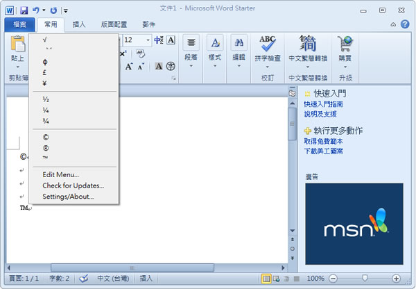首頁電腦軟體文書編輯 CatchChar 在文件中快速插入自訂的特殊符號或字元(Unicode) 使用記事本或 Word 來編輯文件,若需要插入特殊符號或字元時,通常會開啟「輸入法整合器」來挑選(可參閱 如何使用微軟新注音輸入法 2010 ,輸入特殊符號、數學符號、單位符號、計量符號或是希臘字母),不過這樣有點麻煩,若是常用的特殊符號不多,可以來使用 CatchChar 這套免費可在文件中快速插入自訂的特殊符號或字元來輔助,加快文件編輯的速度。 🔔 不錯過任何精彩! 立即訂閱我們的 LINE 官方帳號 每次發佈新文章時,您將會第一時間收到本站文章連結通知,輕鬆掌握最新資訊! 使用 LINE 追蹤文章更新 §相關文章,還可以參閱:PDF Arranger 可調整順序、刪除、旋轉...的多功能 PDF 工具程式Text Replacer 文字替換免費工具如何在 PDF 文件裡添加額外的文字、圖片、圖形或繪圖?Notepad++ 免費多功能記事本軟體doPDF 可在任何程式中藉由[ 列印 ]功能來建立 PDF 檔案 如何使用CatchChar ? 1.完成安裝後,開啟 CatchChar ,便可在工作列的通知區域內找到 CatchChar 的圖示,點選[Settings/About],便可開啟設定視窗。 2.按下[Edit Menu]按鈕可編輯應用用的特殊字元或符號。 Add Menu Separator:可加入分隔線 3.預設開啟 CatchChar 的快速鍵為 [Alt + Shift + C],可在設定視窗中按下[Change Hot Key...]來變更。 4.當開啟文書編輯軟體,要應用 CatchChar 時,便可按下[Alt + Shift + C]快速鍵,來叫出 CatchChar。 CatchChar版本:1.6.2語言:英文性質:免費適用:Windows官方網站:http://helpingthings.com/index.php/insert-unicode-characters下載:按我下載