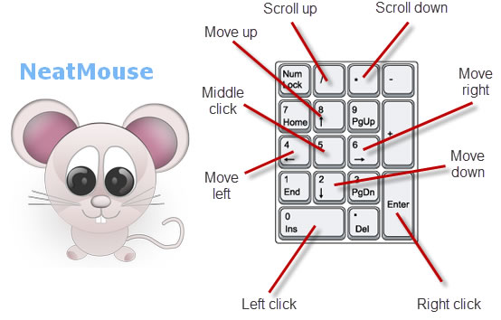 首頁電腦軟體系統應用 NeatMouse 利用鍵盤控制滑鼠 忘記帶滑鼠或是損壞,又無備用時,可以來使用 NeatMouse 這套可利用數字鍵盤來控制滑鼠的免費工具,使用簡單,滑鼠可做的動作像是移動、上下滾動、點擊等等均可模擬,有需要的朋友可以試試。 🔔 不錯過任何精彩! 立即訂閱我們的 LINE 官方帳號 每次發佈新文章時,您將會第一時間收到本站文章連結通知,輕鬆掌握最新資訊! 使用 LINE 追蹤文章更新 §相關文章,還可以參閱:CatLock:可鎖定鍵盤的 Windows 應用程式,防止寵物意外觸碰Zen Ad blocker 瀏覽器與應用程式均適用的廣告攔截器,免費且開放原始碼TimVer 一站式顯示 Windows 版本及電腦硬體相關訊息的工具「微軟電腦管家」內含開機啟動項目管理、儲存空間最佳化等免費工具 全方位提升電腦效能Windows Startup Timer 測量 Windows 從開機到完全啟動所需時間 如何使用NeatMouse? 1.安裝時,可選擇一般安裝或是便攜式安裝。 2.開啟 NeatMouse 來設定啟用滑鼠模擬功能按鍵(Activation)及滑鼠各功能替代按鍵。 ※設定好之後,要啟用時,便可按下 Scroll Lock 來啟用鍵盤模擬滑鼠 3.下圖取自官網的數字鍵盤功能說明 NeatMouse版本:1.00.001語言:英文性質:免費適用:Windows官方網站:http://neatdecisions.com/products/neatmouse/下載:按我下載
