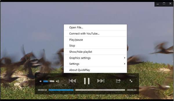 首頁電腦軟體影音視聽 QuickPlay 無邊框的影音播放器 比 Windows 內建的 Media Player 還好用的免費影音播放器 不少,且可播放的影片格式也多,像是 KMPlayer、SPlayer、VLC Media Player 都各自有不同的喜愛者。QuickPlay 同樣也是一套免費的影音播放器,除了可播放一般常見的影片格式外,還可以播放 Blu-ray(藍光)並可支援到 4096p 解析度,播放時,不需全螢幕也可以無邊框的播放影片,簡單實用。 🔔 不錯過任何精彩! 立即訂閱我們的 LINE 官方帳號 每次發佈新文章時,您將會第一時間收到本站文章連結通知,輕鬆掌握最新資訊! 使用 LINE 追蹤文章更新 §相關文章,還可以參閱:超實用免費軟體!DCP-o-matic 讓你的影片變成電影院 DCP 播放格式語音轉文字免費工具 AsrTools 輕鬆搞定字幕、筆記或歌詞整理免費的 PotPlayer 開始搭載 Whisper AI,讓你即時生成字幕與翻譯,外語影片輕鬆看SpleeterGUI:簡單易用的 AI 音軌分離免費開源工具如何使用 Microsoft Clipchamp 自動產生影片字幕? 如何使用QuickPlay? 1.完成安裝並開啟 QuickPlay 後,在播放區使用滑鼠右鍵點擊,若要播放電腦內的影片,可點擊[Open File...],若要播放 Youtube 線上影片,可點擊[Connect with YouTube...](測試時,是不能播放的)。 QuickPlay 支援: Support for .mkv and .mp4 Supports H.264 and AAC for perfect playback. Dolby Digital, DTS and high quality FLAC decoding suppor DirectX Video Acceleration decoding support (H.264, MPEG-2, and VC-1 video) Intel Quick Sync Video-based decoding support (H.264, MPEG-2, and VC-1 video) NVidia CUDA video decoding up to 4K format (H.264, MPEG-2, VC-1 and MPEG-4 ASP video). Dolby TrueHD and DTS-HD support 2.可右鍵點擊[Settings]來開啟設定視窗。 QuickPlay版本:2.6語言:英文性質:免費適用:Windows (須安裝.NET Framework 4.0官方網站:http://www.microsoft.com/download/en/details.aspx?displaylang=en&id=17851下載:按我下載