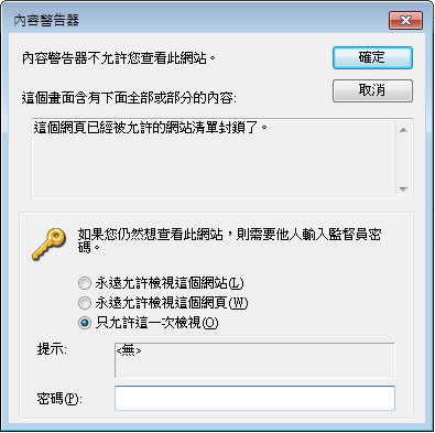 網路的世界包羅萬象,對於尚無法判別或分辨網站所傳達的資訊適合性與正確性的小朋友來說,常有被誤導的風險,當然這有賴於家長平常的關心與觀察,想要將不適合的網站在瀏覽器中禁止瀏覽,若是單一電腦可以編輯 Hosts 文件或是利用 Windows 7 的家長監護功能來達到目的,若就是使用 Windows 系統內建的微軟 Internet Explorer 瀏覽器時,可以透過 IE 網際網路選項的設定,來達到目的。