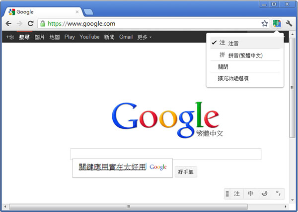 首頁瀏覽器擴充功能生產力工具 Google 輸入工具 - 讓你在網頁也能輕鬆輸入中文或其他語言 - Chrome 瀏覽器擴充功能 (由 Google 提供) 人在出差,若使用非自己所慣用的語言系統,例如 Windows 的簡體中文系統,在瀏覽網頁時,想要輸入繁體中文時,或想註冊某些非慣用語言的網站,需使用當地語言時,可能就會有些麻煩,這時候,可以來試試由 Google 所提供的 Google input tools 來協助,支援各國語言輸入,簡、繁中文的輸入法含注音符號、拼音都可。 🔔 不錯過任何精彩! 立即訂閱我們的 LINE 官方帳號 每次發佈新文章時,您將會第一時間收到本站文章連結通知,輕鬆掌握最新資訊! 使用 LINE 追蹤文章更新 §相關文章,還可以參閱:Bing Chat sidebar for Chrome 讓 Chrome 在側邊欄就能使用 Bing Chat(瀏覽器擴充功能)如何在 Chrome 瀏覽器也能使用全新的 Bing AI?「UseChatGPT.AI」快速編寫、改寫、總結、解釋或翻譯網站上的任何文章 (瀏覽器擴充功能)WebChatGPT 結合網路搜尋資料,讓 ChatGPT 整合資訊沒有時間限制(瀏覽器擴充功能)ChatGPT Prompt Genius 將 ChatGPT 對話內容完整的匯出成 PNG、PDF、MD 檔或分享網址(瀏覽器擴充功能) 如何安裝及使用 Google 輸入工具? 1.使用 Chrome 瀏覽器到達 Google 輸入工具安裝網址後,按下[加到 Chrome]便會開始下載及安裝。 2.安裝完成後,會出現提示。 3.要輸入時,只需按下剛剛所安裝的圖示按鈕,選擇要使用的輸入法即可。 4.若無自己要使用的輸入法,可以點擊[擴充功能選項]來加入自己慣用的輸入法。 Google 輸入工具性質:免費官方網站:https://chrome.google.com/webstore/detail/mclkkofklkfljcocdinagocijmpgbhab?hl=zh-TW&utm_source=chrome-ntp-launcher