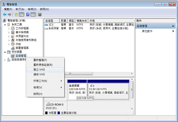如何在 Windows 7 系統內建立虛擬硬碟(VHD)?