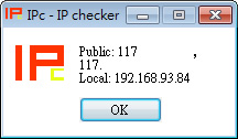 首頁電腦軟體網路應用 IPc 外網與內網 IP 顯示器(免安裝) 透過 NAT(Network Address Translation) 所連接到的網際網路,像是 IP分享器或是只有一個對外 IP 卻可以有多台電腦同時上網,通常都是使用 NAT 這種網路地址轉換技術,若想要知道內網與外網所使用的 IP 為合,可以來使用 IPc 這套免安裝就可顯示內、外網的 IP 地址。 🔔 不錯過任何精彩! 立即訂閱我們的 LINE 官方帳號 每次發佈新文章時,您將會第一時間收到本站文章連結通知,輕鬆掌握最新資訊! 使用 LINE 追蹤文章更新 §相關文章,還可以參閱:Bright VPN 提供覆蓋全球60多個位置的免費 VPN服務WhoisThisDomain 網域名稱註冊資料免費查詢工具PingInfoView 可自訂時間 PING 自訂的 IP 或網域並發出通知Wireless Network Watcher 找出有哪些裝置正在連你的無線網路IPNetInfo IP 資訊查詢工具 如何使用IPc? 1.下載後,直接執行「IPc_v1.3.7_AHK_32bit.exe」便可開啟,並直接顯示內、外網的 IP 地址。 2.若想複製 IP 地址,可在工作列的通知區域,使用滑鼠右鍵點擊 IPc 圖示,來使用複製功能。 IPc語言:英文性質:免費適用:Windows官方網站:http://sourceforge.net/projects/ipchk/下載:按我下載
