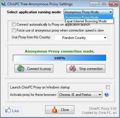 首頁電腦軟體網路應用 ChrisPC Free Anonymous Proxy 免費、匿名的 Proxy 代理伺服器工具 Proxy 代理伺服器的功能通常是用來加快瀏覽網頁的速度,不過現在隨著頻寬的逐漸加大,更多時候是用來當做突破網路封鎖的工具,想要在 Windows 系統設定使用 Proxy Server,可以在 IE 瀏覽器的網際網路選項中來設定,但是哪裡找免費又可匿名的 Proxy 代理伺服器呢?若有這個需求可以來試試 ChrisPC Free Anonymous Proxy 這套可分國家區域幫你搜尋可用的 Proxy Server,還幫你在瀏覽器中設定好,已可啟用當網路速度慢時,自動啟用 Proxy ,支援 IE、FireFox 與 Google Chrome 等瀏覽器。 🔔 不錯過任何精彩! 立即訂閱我們的 LINE 官方帳號 每次發佈新文章時,您將會第一時間收到本站文章連結通知,輕鬆掌握最新資訊! 使用 LINE 追蹤文章更新 §相關文章,還可以參閱:Bright VPN 提供覆蓋全球60多個位置的免費 VPN服務WhoisThisDomain 網域名稱註冊資料免費查詢工具PingInfoView 可自訂時間 PING 自訂的 IP 或網域並發出通知Wireless Network Watcher 找出有哪些裝置正在連你的無線網路IPNetInfo IP 資訊查詢工具 如何使用ChrisPC Free Anonymous Proxy? 1.安裝時須注意會安裝額外的軟體與設定,請注意。 2.完成安裝,開啟 ChrisPC Free Anonymous Proxy 後,Select application running Mode 有兩種模式可選,第一個是免費的。 Connect automatically to Proxy on application launch:程式啟動時,則自動連接 Proxy Force use of anonymous proxy when connection speed is slow:當網路連線速度慢,自動使用 Proxy Use Proxy from this Country:可依據國家區域來篩選要使用的 Proxy 3.點擊[Connect Proxy]則可開始搜尋與設定,設定後 IE 的瀏覽器的網際網路選項。 ChrisPC Free Anonymous Proxy版本:8.05語言:英文性質:免費適用:Windows官方網站:https://www.chris-pc.com/index.html下載:按我下載