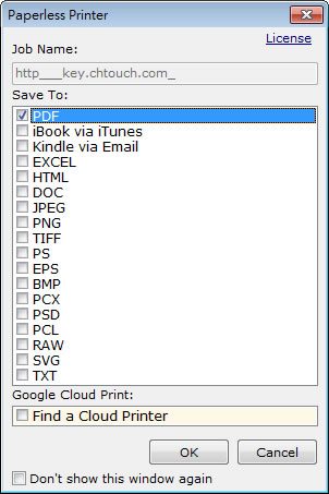 首頁電腦軟體生產力工具 Paperless Printer 透過「列印」將文件儲存成 PDF, EXCEL, DOC, HTML, TIFF, TXT... 要將文件轉檔成其他應用文件格式,列如想要將網頁利用 PDF 格式來儲存或是將 PDF 轉成 DOC 文件,最簡單的方式就是安裝一個虛擬印表機,透過應用程式的「列印」功能,就能將文件儲存成另外一種格式,文件格式的互轉除了要能保留原有的排版格式,是否支援中文也是重點,Paperless Printer 就是一套可免費個人使用的虛擬印表機應用程式,透過像是瀏覽器、記事本、Word 等文書編輯軟體的「列印」功能,將文件儲存成 PDF、EXCEL、DOC、HTML、TIFF、TXT、PS、EPS、PNG、JPEG、BMP、PCX、PSD、PCL、RAW、SVG ,當儲存成 PDF 文件時,還可以設定保全等項目,且中文顯示與格式的保留均無問題。 🔔 不錯過任何精彩! 立即訂閱我們的 LINE 官方帳號 每次發佈新文章時,您將會第一時間收到本站文章連結通知,輕鬆掌握最新資訊! 使用 LINE 追蹤文章更新 §相關文章,還可以參閱:AingDesk:一鍵安裝 Ollama AI 模型管理器,讓 LLaMA、DeepSeek 在本機電腦上運行Arc 瀏覽器正式登陸 Windows 11,開啟全新瀏覽體驗!Norton Secure Browser 使用 Chromium 核心的瀏覽器,有廣告封鎖和隱私保護功能BingGPT 桌面應用程式,讓你不用 Edge 也能用 Bing 聊天機器人SlippyClerk 數字、英文字母有序字串產生器 可自訂前後綴字詞 如何使用Paperless Printer ? 1.完成 Paperless Printer 虛擬印表機的安裝,開啟要列印的程式,例如要將瀏覽器正在瀏覽的網頁儲存成 PDF 格式文件。 2.在列印視窗中選擇剛剛安裝的 Paperless Printer 虛擬印表機,點擊[列印]。 3.接下來選擇你要列印(儲存)的格式,點擊[OK]。 4.可供調整的項目,包含文件的儲放路徑、檔案名稱、PDF 選項、保全設定等。 5.PDF 儲存後開啟。 Paperless Printer語言:英文性質:個人免費使用適用:Windows官方網站:http://www.rarefind.com/paperlessprinter/index.html下載:按我下載 | 備用下載點(1) | 備用下載點(2)