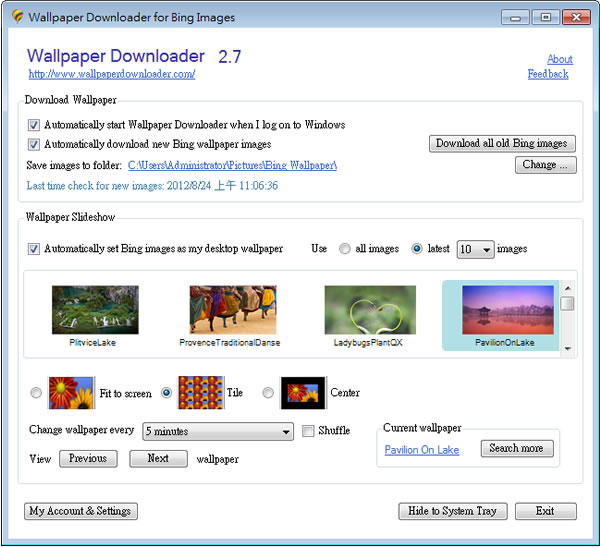 首頁電腦軟體視窗桌面 Wallpaper Downloader 定時自動抓取 Bing 圖片來當電腦桌布 Bing 是微軟提供搜尋引擎的一個網站服務,每日均有提供相當精美的背景圖片,讓人一進入總有好心情,想要將這些精美的圖片下載來當桌面背景,可以透過 Wallpaper Downloader 這套可定時自動抓取 Bing 圖片來當電腦桌布的免費軟體,可自訂下載時間,下載來的相片也可以存放到自己的電腦,方便你後續的應用。 🔔 不錯過任何精彩! 立即訂閱我們的 LINE 官方帳號 每次發佈新文章時,您將會第一時間收到本站文章連結通知,輕鬆掌握最新資訊! 使用 LINE 追蹤文章更新 §相關文章,還可以參閱:微軟 City Art Search 自動將 10400多幅世界名畫設置成 Windows 鎖定螢幕畫面Digital Clock 4 可靈活自訂的桌面時鐘,支援報時、計時器、鬧鐘等多款附加套件TrafficMonitor 在 Windows 桌面上顯示網路上傳與下載的即時網速「免費下載」故宮博物院 2023 兔年月曆桌布TaskSeparator11 可在工作列圖示之間加入分隔線的免費應用程式 如何使用 Wallpaper Downloader? 1.初次開啟 Wallpaper Downloader ,需要註冊一個帳號。 2.進行設定。 Wallpaper Downloader版本:2.7語言:英文性質:免費適用:Windows官方網站:http://www.wallpaperdownloader.com/download.html下載:按我下載