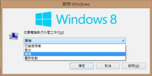 首頁操作技巧Windows Windows 8 如何關機? 在 Windows 8 之前的 Windows 系統的關機選項按鈕都是相當明確的,到了 Windows 8 操作介面就有了改變,介面多增加了 Metro 的風格,附屬的功能也增加了像是財經、天氣、地圖、行事曆等功能,但也將以前熟悉的像是以前的[開始]功能表按鈕也不見了,想關機時[電腦關機]的按鈕也找不到。那麼該如何開啟關機選項來進行操作呢? 🔔 不錯過任何精彩! 立即訂閱我們的 LINE 官方帳號 每次發佈新文章時,您將會第一時間收到本站文章連結通知,輕鬆掌握最新資訊! 使用 LINE 追蹤文章更新 §相關文章,還可以參閱:你的 Windows 筆電是真睡還是裝睡?一個設定終結背包發熱耗電學起來!微軟親授 10 個提升 Windows PC 效能的技巧如何升級 Windows 11 25H2?最新版本功能亮點與完整更新步驟Windows 工作列時鐘顯示秒數:真的會影響電池續航力嗎?LTT Labs 完整實測解析Windows 快速取出資料夾檔案名稱清單!內建功能輕鬆搞定,不用額外軟體 Windows 8 如何開啟關機選項? 1.同時按下鍵盤的 Ctrl + Alt + DEL 鍵快速叫出關機選項。 2.回到桌面上利用 ALT + F4 關機。 3.利用介面操作,將滑鼠指標移動到畫面最右上或是最右下角,停一下便會顯示 Charms Bar,點擊[設定] >點擊[開啟/關閉]的按鈕,即可以看到關機選單。 4.建立捷徑,方便後續操作,新增捷徑 > 然後在輸入項目位置的欄位中輸入 Shutdown -s -t 0 指令,點擊[下一步],輸入捷徑名稱後,便可完成建立,下次要關機時,滑鼠雙擊該捷徑,便會關機。 Shutdown 指令的相關操作,可開啟命令提示字元,輸入 Shutdown /? 來查詢相關參數應用。