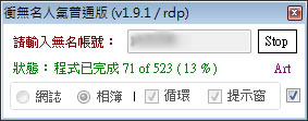 首頁電腦軟體生產力工具 「衝無名人氣普通版」讓網誌與相簿更有人氣 若有使用無名小站的網誌或相簿,想要衝高人氣,不仿可以來試試「衝無名人氣普通版」這套可衝高在網誌或相簿的人氣應用程式,其中相簿還可以不斷循環,且免安裝,操作簡單,只要輸入無名帳號便可運作,自己使用或幫好友都是不錯的選擇。 🔔 不錯過任何精彩! 立即訂閱我們的 LINE 官方帳號 每次發佈新文章時,您將會第一時間收到本站文章連結通知,輕鬆掌握最新資訊! 使用 LINE 追蹤文章更新 §相關文章,還可以參閱:AingDesk:一鍵安裝 Ollama AI 模型管理器,讓 LLaMA、DeepSeek 在本機電腦上運行Arc 瀏覽器正式登陸 Windows 11,開啟全新瀏覽體驗!Norton Secure Browser 使用 Chromium 核心的瀏覽器,有廣告封鎖和隱私保護功能BingGPT 桌面應用程式,讓你不用 Edge 也能用 Bing 聊天機器人SlippyClerk 數字、英文字母有序字串產生器 可自訂前後綴字詞 如何使用「衝無名人氣普通版」? 1.解壓縮後,滑鼠雙擊「衝無名人氣普通版.exe」便可開啟應用程式,無須安裝。 2.開啟後,只要輸入你在無名的帳號,選擇要衝高的是網誌還是相簿(可循懷),點擊[GO]即可開始運作。 衝無名人氣普通版版本:1.9.1語言:繁體中文性質:免費適用:Windows官方網站:http://art.twgg.org/2009/08/runwretchwasher.html下載:按我下載