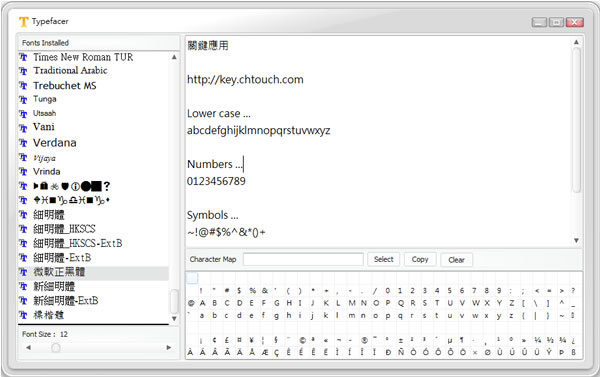首頁免費字型字型工具 Typefacer 預覽已安裝字型 進行美工時,若有需要應用到字體字型,可以來使用 Typefacer 這套相當簡單的字型預覽工具,可以直接輸入所要預覽的文字或句子,然後從已安裝的字型清單中點選要使用的字型來呈現所輸入的文字樣貌。 🔔 不錯過任何精彩! 立即訂閱我們的 LINE 官方帳號 每次發佈新文章時,您將會第一時間收到本站文章連結通知,輕鬆掌握最新資訊! 使用 LINE 追蹤文章更新 §相關文章,還可以參閱:FontShow 本機字型預覽與比較免費工具,線上輕鬆篩選最佳字體Font of Web 輸入網址就幫你找出該網站所使用的字體與下載網址如何建立自己手寫的英文字型?「守寫字」讓手寫字也能變成可用電腦打出的字體FontViewOK 字型比較免費工具 如何使用Typefacer? 1.完成安裝開啟 Typefacer 後,便會直接列出電腦系統內所有已安裝的字型。 2.可在輸入框中輸入要預覽的文字,然後點選左側欄的字型。 Typefacer版本:1.0語言:英文性質:免費適用:Windows官方網站:http://www.cybia.co.uk/typefacer.html下載:按我下載