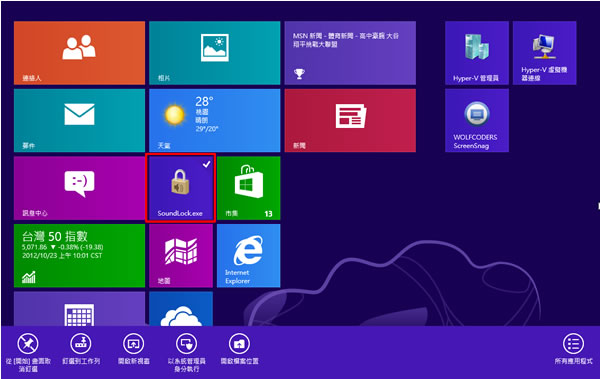 首頁操作技巧Windows 如何釘選應用程式到 Windows 8 的開始畫面或工作列? Windows 8 的[開始]畫面與之前版本有很大的不同,若想要釘選或取消釘選應用程式到[開始]畫面或[工作列]來加快操作的速度,步驟也相當簡化。 🔔 不錯過任何精彩! 立即訂閱我們的 LINE 官方帳號 每次發佈新文章時,您將會第一時間收到本站文章連結通知,輕鬆掌握最新資訊! 使用 LINE 追蹤文章更新 §相關文章,還可以參閱:學起來!微軟親授 10 個提升 Windows PC 效能的技巧如何升級 Windows 11 25H2?最新版本功能亮點與完整更新步驟Windows 工作列時鐘顯示秒數:真的會影響電池續航力嗎?LTT Labs 完整實測解析Windows 快速取出資料夾檔案名稱清單!內建功能輕鬆搞定,不用額外軟體Windows 11 如何縮小工作列圖示按鈕,打造更精簡桌面視覺 如何釘選應用程式到 Windows 8 的開始畫面或工作列? 1.在[開始]畫面上,使用滑鼠右鍵在想要釘選的應用程式上點擊後,該應用程式的圖示會顯示成勾選狀態。 2.若點擊[釘選到工作列]圖示按鈕,則可切換到桌面上工作列的來檢視剛完成釘選的應用程式;取消釘選則可在工作列上對要取消已釘選的圖示,使用滑鼠右鍵點擊。 3.從桌面上釘選應用程式或資料夾到[開始]畫面,同樣利用滑鼠右鍵即可完成。