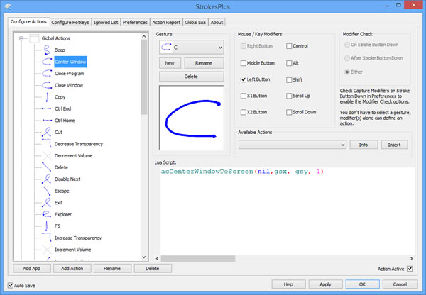首頁電腦軟體生產力工具 StrokePlus 利用滑鼠劃出圖形來操作電腦(免安裝) 在操作電腦時,除了常用的快速鍵與滑鼠操作外,StrokePlus 這套軟體額外提供利用滑鼠畫出圖形以便快速操作電腦,已內建有一般操作類,例如畫一個 Z 可以回到上一步驟、畫一個 O 可以開啟記事本......等等,另外,也有針對 Chrome 瀏覽器與桌面的操作圖形,如果,還不夠用,你也可以自訂自己圖形以便快速控制電腦。 🔔 不錯過任何精彩! 立即訂閱我們的 LINE 官方帳號 每次發佈新文章時,您將會第一時間收到本站文章連結通知,輕鬆掌握最新資訊! 使用 LINE 追蹤文章更新 §相關文章,還可以參閱:AingDesk:一鍵安裝 Ollama AI 模型管理器,讓 LLaMA、DeepSeek 在本機電腦上運行Arc 瀏覽器正式登陸 Windows 11,開啟全新瀏覽體驗!Norton Secure Browser 使用 Chromium 核心的瀏覽器,有廣告封鎖和隱私保護功能BingGPT 桌面應用程式,讓你不用 Edge 也能用 Bing 聊天機器人SlippyClerk 數字、英文字母有序字串產生器 可自訂前後綴字詞 如何使用 StrokePlus? 1.解壓縮後,執行「StrokesPlus.exe」便可開啟,無須安裝。開啟後,可在工作列的通知區域看到 StrokePlus 正在執行的圖示,利用滑鼠右鍵點擊,可開啟功能表,點擊[Action]。 2.可以看到內建在系統內的圖形功能,你可以立刻選擇一個依樣畫出圖形便可執行該指令,請注意需搭配 Mouse/key Modifier 鍵來使用。 3.若需要自行建立,可點擊[New]來建立。 StrokePlus版本:2.8.6.4語言:英文性質:免費適用:Windows官方網站:https://www.strokesplus.com/下載:32 Bit 按我下載 | 64 Bit 按我下載