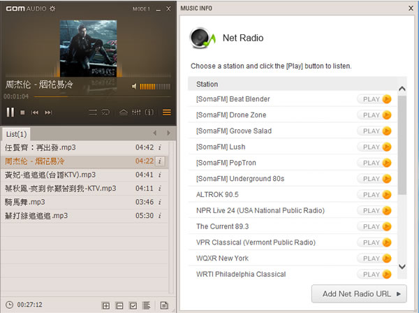 首頁電腦軟體影音視聽 GOM Audio 免費音樂播放器 如果你覺得利用影音播放器來播放音樂,實在有點浪費資源,可以來試試 GOM Audio 這個免費的音樂播放器,除了可以播放自身電腦內的音樂,也可以是音樂檔案的網址,在聲音檔案格式上,則支援 CDs / MP3 / M4A / OGG / WMA / WAV /MID / FLAC / APE / PLS 等多數的音樂檔案格式,除此之外,GOM Audio 還內建不少國外電台,讓你在網路上即可收聽。 🔔 不錯過任何精彩! 立即訂閱我們的 LINE 官方帳號 每次發佈新文章時,您將會第一時間收到本站文章連結通知,輕鬆掌握最新資訊! 使用 LINE 追蹤文章更新 §相關文章,還可以參閱:超實用免費軟體!DCP-o-matic 讓你的影片變成電影院 DCP 播放格式語音轉文字免費工具 AsrTools 輕鬆搞定字幕、筆記或歌詞整理免費的 PotPlayer 開始搭載 Whisper AI,讓你即時生成字幕與翻譯,外語影片輕鬆看SpleeterGUI:簡單易用的 AI 音軌分離免費開源工具如何使用 Microsoft Clipchamp 自動產生影片字幕? 如何使用GOM Audio ? 1.完成安裝,開啟 GOM Audio 後,可點擊左上角 GOM AUDIO 字樣來展開功能表,點擊[Open]來開啟聲音檔案並加入播放;點擊[Streaming Broadcast]可開啟內建的網路電台,。 2.點擊[]可開啟選項設定視窗,其中 File Types 可設定何種聲音檔案格式預設由 GOM Audio 音樂播放器來播放。 3.播放時,若需要查看該檔案的資訊,可點擊播放清單的[i]來開啟 ID3Tag 資訊。 4.在 Skin 的功能選項中,可切換 GOM Audio 的外觀。 GOM Audio版本:2.2.27.0語言:英文性質:免費適用:Windows官方網站:https://www.gomlab.com/gomaudio-audio-player/下載:按我下載