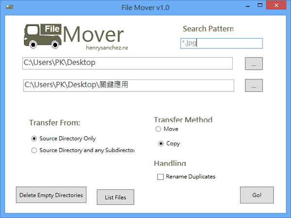 首頁電腦軟體檔案管理 File Mover 檔案分類管理工具 在電腦裡想要管理好每個檔案,實在不容易,常常因為惰性加上檔案的來源管道相當多,一旦疏忽幾次後,後面也就懶得整理了,因此,便有幫你分類檔案的管理工具出現,節省檔案分類的過程與時間。File Mover 是個透過檔案副檔名為依據的檔案分類工具,雖說,這些動作,在 Windows 本身的功能就能做到,但步驟較多,將步驟包裝成一個工具,不但節省時間,亦可不花腦筋。 🔔 不錯過任何精彩! 立即訂閱我們的 LINE 官方帳號 每次發佈新文章時,您將會第一時間收到本站文章連結通知,輕鬆掌握最新資訊! 使用 LINE 追蹤文章更新 §相關文章,還可以參閱:檔案好多重複怎麼辦?免費 dupeGuru 幫你一鍵清出電腦空間[ 免費使用 ]PDFgear 整合各種 PDF 工具,具格式轉換、編輯、合併或拆分等功能7-Zip 檔案壓縮與解壓縮免費軟體AmoK Exif Sorter 讓照片按拍照日期重新命名並自動分類的免費軟體PDF Unshare 限制 PDF 檔案的讀取有效日期 如何使用File Mover? 下載免安裝版本並執行,開啟後,Search Pattern 輸入要分類的檔案附檔名;依序往下輸入來源資料夾與目的地資料夾;若要先檢視所找的檔案,可點擊[List Files],確定後,按下[Go!],便開始分類。 Transfer From 可點選只搜尋所選資料夾或是包含以下的資料夾 Transfer Mode 可選檔案是移動或是複製 若怕遇相同檔名,可勾選 Rename Duplicates 來處理 File Mover版本:1.0語言:英文性質:免費適用:Windows官方網站:http://henrysanchez.net/fmover.html下載:免安裝版本 按我下載 | 安裝版本 按我下載