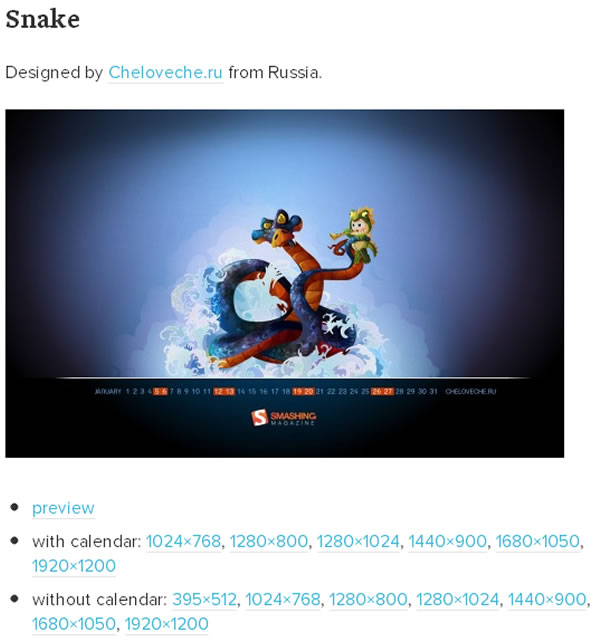 首頁電腦軟體生產力工具 20款 2013年 1月份月曆桌布供你挑選 很快的 2013年已來到,還沒有 2013年的月曆,可以來 smashingmagazine.com 這個網站來挑選共 20款精美的 2013年 1月份月曆桌布。 🔔 不錯過任何精彩! 立即訂閱我們的 LINE 官方帳號 每次發佈新文章時,您將會第一時間收到本站文章連結通知,輕鬆掌握最新資訊! 使用 LINE 追蹤文章更新 §相關文章,還可以參閱:AingDesk:一鍵安裝 Ollama AI 模型管理器,讓 LLaMA、DeepSeek 在本機電腦上運行Arc 瀏覽器正式登陸 Windows 11,開啟全新瀏覽體驗!Norton Secure Browser 使用 Chromium 核心的瀏覽器,有廣告封鎖和隱私保護功能BingGPT 桌面應用程式,讓你不用 Edge 也能用 Bing 聊天機器人SlippyClerk 數字、英文字母有序字串產生器 可自訂前後綴字詞 20款精美的 2013年 1月份月曆桌布介紹 1.使用 IE 瀏覽器進入 smashingmagazine.com 網站,便可看到精美的 2013年桌布,每張桌布下均有其解析度可供挑選,點擊進入後,可使用滑鼠右鍵來[另存圖片],再利用[設成背景]即可。 ※with calendar 與 without calendar 差別在於前者有放上 2013年 1月的月曆,後者無 2.其餘的可至官網查看。 smashingmagazine.com官方網站:http://www.smashingmagazine.com/2012/12/31/desktop-wallpaper-calendar-january-2013/