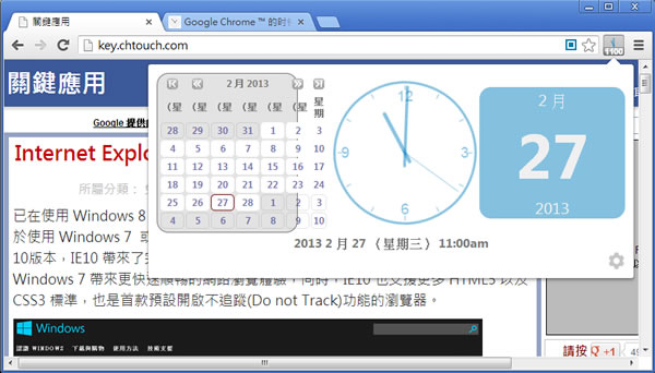 首頁瀏覽器擴充功能生產力工具 Clock for Google Chrome™ 在瀏覽器上設置提醒時間 常常一上網就會忘記時間,若你是使用 Google Chrome 瀏覽器,可以來安裝 Clock for Google Chrome™ 擴充功能,除了可以顯示日期與當前時間之外,還可以設定鬧鈴時間,來提醒應注意事項。 🔔 不錯過任何精彩! 立即訂閱我們的 LINE 官方帳號 每次發佈新文章時,您將會第一時間收到本站文章連結通知,輕鬆掌握最新資訊! 使用 LINE 追蹤文章更新 §相關文章,還可以參閱:Bing Chat sidebar for Chrome 讓 Chrome 在側邊欄就能使用 Bing Chat(瀏覽器擴充功能)如何在 Chrome 瀏覽器也能使用全新的 Bing AI?「UseChatGPT.AI」快速編寫、改寫、總結、解釋或翻譯網站上的任何文章 (瀏覽器擴充功能)WebChatGPT 結合網路搜尋資料,讓 ChatGPT 整合資訊沒有時間限制(瀏覽器擴充功能)ChatGPT Prompt Genius 將 ChatGPT 對話內容完整的匯出成 PNG、PDF、MD 檔或分享網址(瀏覽器擴充功能) 如何安裝及使用 Bookmark Sentry? 1.使用 Chrome 瀏覽器到達 Clock for Google Chrome™ 安裝網址後,按下[加到 Chrome]便會開始下載及安裝。 2.安裝完成後,會出現提示。 3.若要查詢現在時間與日期,可點擊該圖示,也可以點擊頁面右下角的齒輪圖示來開啟設定頁面。 4.開啟設定頁面,可設定外觀、時間與日期的顯示格式,也可以加入提醒時間。 Clock for Google Chrome&trade性質:免費官方網站:https://chrome.google.com/webstore/detail/clock-for-google-chrome/emakkfldeggiinnfcdjkakdfcppbfhdg?hl=en