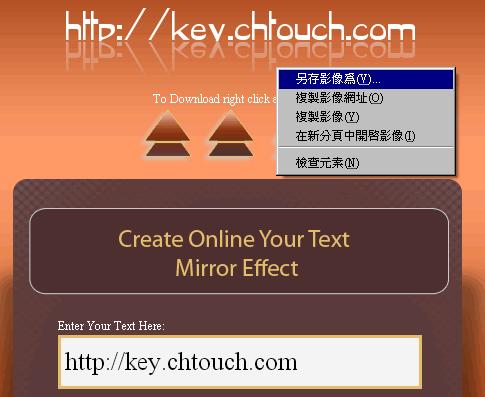 首頁線上工具影像繪圖 MirrorText 文字倒影產生器 想要做出讓文字有倒影效果的圖片,做法有很多,很多人可能會想到可以使用 Photoshop 來製作,但是,這可能需要安裝 Photoshop 且經過練習,才有辦法。若想要快速製作,又不想安裝軟體,可以來 MirrorText 這個免費的線上應用工具,只要輸入想要產生倒影的文字,調整好字形與顏色,便能快速產生文字倒影。 🔔 不錯過任何精彩! 立即訂閱我們的 LINE 官方帳號 每次發佈新文章時,您將會第一時間收到本站文章連結通知,輕鬆掌握最新資訊! 使用 LINE 追蹤文章更新 §相關文章,還可以參閱:Google 親自示範:Nano Banana AI 圖像編輯工具的 13 個熱門玩法照片角度不滿意?AI 幫你調整!3D Camera Control 讓舊照片任意變換視角Meta AI 免費帳戶也能用 Midjourney!無限生成 AI 圖片,台灣可用Nano Banana Pro 幫你放煙火,地點、形狀由你指定Mock.Club:免費 AI Mockup 素材庫,拖曳截圖立即生成專業展示圖 如何使用 MirrorText 來產生文字倒影效果? 1.使用瀏覽器進入 MirrorText 網站後,輸入想要產生倒影的文字,調整好字形與顏色,點擊[Create] 便能快速產生文字倒影 2.可在產生後的圖片,使用滑鼠右鍵點擊來下載。 MirrorText網站網址:http://www.mirrortext.net/