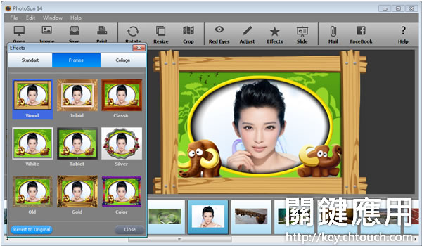首頁電腦軟體影像繪圖 PhotoSun 替圖片加入美化效果 PhotoSun 是一套免費的圖片後製軟體,具有圖片旋轉、裁剪、改變大小、消除紅眼與色彩調整等等的圖片編輯功能,另外,還有替圖片加入特效的功能,你不用擔心不會操作,PhotoSun 提供範本供你直接套用,方便又簡單,還可以透過 PhotoSun 用幻燈片的方式來播放圖片,並可播放襯底音樂。 🔔 不錯過任何精彩! 立即訂閱我們的 LINE 官方帳號 每次發佈新文章時,您將會第一時間收到本站文章連結通知,輕鬆掌握最新資訊! 使用 LINE 追蹤文章更新 §相關文章,還可以參閱:告別訂閱制!Canva 旗下 Affinity 永久免費,向量設計、影像處理、排版工具全面開放Pineapple Pictures 載入速度超快的相片檢視器(免安裝)PhotoResizerOK 可快速調整圖片尺寸的免費軟體ShortDoorNote 將輸入的文字快速轉成圖片Bzzt! Image Editor 圖片批次壓縮、轉檔及尺寸調整的免費工具 如何使用 PhotoSun? 1.完成安裝開啟 PhotoSun 後,若需要加入資料夾內的圖片,可點擊[Open],若只想編輯單張圖片,可點擊[Image]來載入圖片檔案。 Rotate:旋轉圖片 Resize:改變圖片大小 Crop:裁剪 Red eyes:紅眼消除 Adjust:色彩調整 2.點擊[Effects]可替圖片加入效果,各種效果可相互搭配。 3.點擊[Slide]可設定相片播放間隔、轉場效果、背景音樂與播放相片。 PhotoSun版本:14語言:英文性質:免費適用:Windows官方網站:http://micranes.weebly.com/index.html下載:按我前往官網下載