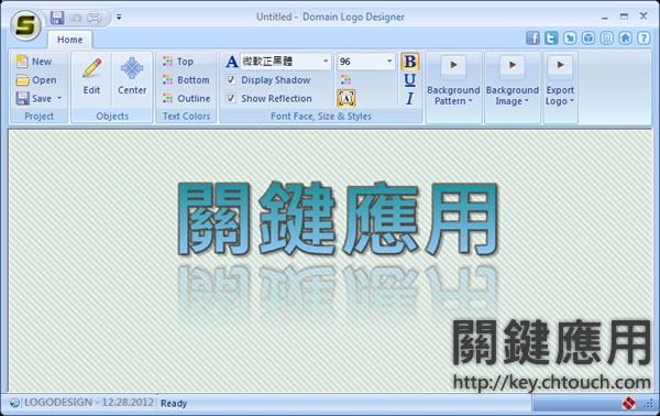 首頁電腦軟體影像繪圖 Domain Logo Designer 文字 Logo 產生器 沒有美工的底子又想要製作 Logo 最快速的方法就是利用 Logo 產生器,Domain Logo Designer 的使用相當簡單,只要輸入要產生的 Logo 文字(中、英文均可)便可調整其設計好的參數,輕鬆且快速的產生 Logo。 🔔 不錯過任何精彩! 立即訂閱我們的 LINE 官方帳號 每次發佈新文章時,您將會第一時間收到本站文章連結通知,輕鬆掌握最新資訊! 使用 LINE 追蹤文章更新 §相關文章,還可以參閱:告別訂閱制!Canva 旗下 Affinity 永久免費,向量設計、影像處理、排版工具全面開放Pineapple Pictures 載入速度超快的相片檢視器(免安裝)PhotoResizerOK 可快速調整圖片尺寸的免費軟體ShortDoorNote 將輸入的文字快速轉成圖片Bzzt! Image Editor 圖片批次壓縮、轉檔及尺寸調整的免費工具 如何使用 Domain Logo Designer? 1.完成安裝開啟 Domain Logo Designer 應用軟體後,預設會有 My Logo 的字樣在編輯框中,可點擊[Edit]來修改。 Center:將文字框置中 Top、Bottom 及 Outline:分別用來設定文字的上、下與外框的顏色 Display Shadow:陰影 Show Reflection:倒影 Background:設定背景色或使用圖片當背景 Export Logo:匯出成 PNG 圖檔 2.免費版與付費版本最大的不同,在於文字無法換行。 Domain Logo Designer版本:免費版語言:英文性質:免費適用:Windows官方網站:http://www.domainpunch.com/domain-logo-designer/download.php下載:按我下載