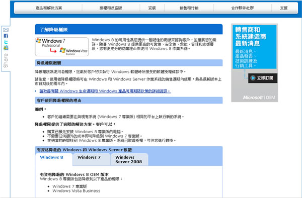 首頁操作技巧Windows 如何從 Windows 8 降級到 Windows 7 作業系統? 現在購買電腦時,預設應該都會安裝 Windows 8 作業系統,若你有實際的需要,希望能使用 Windows 7 版本,現在在微軟官方網站也公布,如何從 Windows 8 降級到 Windows 7 作業系統的條件與說明,包含有資格降級的 Windows 8 OEM 版本、Windows 7 OEM 版本及 Windows Server OEM 版本,其實際應用範例及降級權限詳細資料與常見問題集,可參考微軟官網。 🔔 不錯過任何精彩! 立即訂閱我們的 LINE 官方帳號 每次發佈新文章時,您將會第一時間收到本站文章連結通知,輕鬆掌握最新資訊! 使用 LINE 追蹤文章更新 §相關文章,還可以參閱:你的 Windows 筆電是真睡還是裝睡?一個設定終結背包發熱耗電學起來!微軟親授 10 個提升 Windows PC 效能的技巧如何升級 Windows 11 25H2?最新版本功能亮點與完整更新步驟Windows 工作列時鐘顯示秒數:真的會影響電池續航力嗎?LTT Labs 完整實測解析Windows 快速取出資料夾檔案名稱清單!內建功能輕鬆搞定,不用額外軟體 從 Windows 8 降級到 Windows 7 作業系統