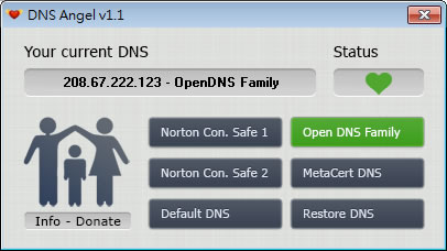 首頁電腦軟體資訊安全 Dns Angel 利用 DNS 避免小孩接觸不適當的資訊(免安裝) DNS(Domain Name System)其功用在於網域名稱對應 IP 位址的解析,所以當我們在網址列輸入 IP或網域名稱,便是透過 DNS 來找尋所在的伺服器。通常 ISP 都會提供 DNS 方便我們上網,但是 ISP 的 DNS 不會篩選網址所提供的資訊是否適合目前的使用者,若是家中有小孩,建議你可以使用 Dns Angel 這套免安裝又可過濾不良資訊的免費軟體。 🔔 不錯過任何精彩! 立即訂閱我們的 LINE 官方帳號 每次發佈新文章時,您將會第一時間收到本站文章連結通知,輕鬆掌握最新資訊! 使用 LINE 追蹤文章更新 §相關文章,還可以參閱:PDFEncrypt 替 PDF 檔案加入禁止列印、注釋、複製、修改及開啟密碼等保全限制WHDownloader 微軟 Office及 Windows 更新檔下載器Free Virtual Keyboard 虛擬鍵盤免費軟體 (螢幕小鍵盤)BlankAndSecure 讓刪除的檔案無法被還原[ Windows Server ]如何使用 win-acme 申請 Let's Encrypt SSL 並安裝到 IIS? 如何使用Dns Angel? 1.下載並解壓縮,執行「」便可開啟,無須安裝。開啟後,要更改成受保護的 DNS 可直接選擇所要的 DNS。 2.完成更改後,Status 會以綠色的星形符號來告知,若需要換回之前的 DNS 也只要按下[Default DNS]即可。 Dns Angel版本:1.1語言:英文性質:免費適用:Windows官方網站:http://www.sordum.org/下載:按我下載