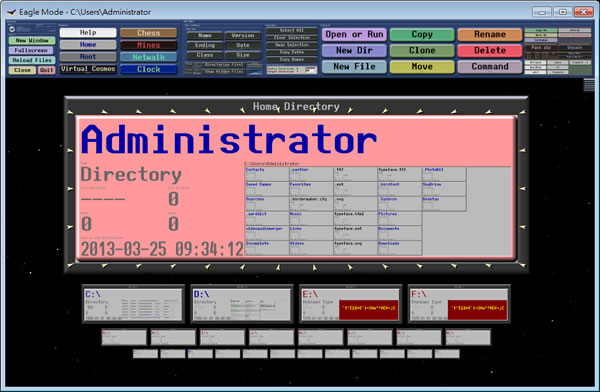 首頁電腦軟體檔案管理 Eagle Mode 專業的檔案總管 若覺得用慣了 Windows 內建的檔案總管,想換個新介面試試,可以來安裝 Eagle Mode 這套免費軟體,包含小遊戲、時鐘及常用的工具、指令一應俱全。 🔔 不錯過任何精彩! 立即訂閱我們的 LINE 官方帳號 每次發佈新文章時,您將會第一時間收到本站文章連結通知,輕鬆掌握最新資訊! 使用 LINE 追蹤文章更新 §相關文章,還可以參閱:檔案好多重複怎麼辦?免費 dupeGuru 幫你一鍵清出電腦空間[ 免費使用 ]PDFgear 整合各種 PDF 工具,具格式轉換、編輯、合併或拆分等功能7-Zip 檔案壓縮與解壓縮免費軟體AmoK Exif Sorter 讓照片按拍照日期重新命名並自動分類的免費軟體PDF Unshare 限制 PDF 檔案的讀取有效日期 如何使用Eagle Mode? 1.完成安裝開啟 Eagle Mode 後,首先會出現軟體的授權說明...等等,點擊[Continue]。 2.進入介面後,會出現檔案結構,對於上方的功能表及下方的檔案結構,若覺得看不清楚,都可以利用滑鼠中間鍵轉動放大\縮小部分。 3.小遊戲與時鐘的部分。 Eagle Mode版本:0.95.1語言:英文性質:免費適用:Windows官方網站:http://eaglemode.sourceforge.net/下載:按我前往官網下載