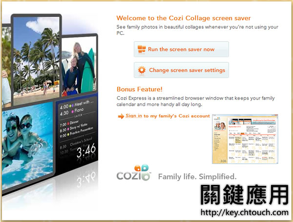 首頁電腦軟體螢幕工具 Cozi Collage Screensaver 自動挑選照片拼貼成螢幕保護程式 多數的螢幕保護程式,所呈現的都是固定好的內容,而 Cozi Collage Screensaver 這套免費的螢幕保護程式,卻可以指定圖片資料夾,自動挑選圖片,並動態的生成圖片拼貼來呈現,當電腦進入螢幕保護程式時,就像是在播放幻燈片,而這些圖片都是自己所指定的,讓螢幕保護程式,更有價值。 🔔 不錯過任何精彩! 立即訂閱我們的 LINE 官方帳號 每次發佈新文章時,您將會第一時間收到本站文章連結通知,輕鬆掌握最新資訊! 使用 LINE 追蹤文章更新 §相關文章,還可以參閱:Fliqlo 電腦翻頁式時鐘螢幕保護程式,免費下載使用ScreenToGif 將螢幕畫面錄影並存成 Gif 動畫檔Python 官方所提供的 IDLE 整合式開發環境PicPick 免費螢幕擷取軟體,內建編輯器和各項實用工具Pointofix 將螢幕變為電子白板,可直接在螢幕上畫箭頭、註記、標重點(繁體中文版) 如何使用 Cozi Collage Screensaver? 1.完成安裝開啟 Cozi Collage Screensaver 後,可以先點擊[Change screen saver settings]來設定螢幕保護程式的相關參數。 2.在 General 頁籤,可以設定產生新圖片拼貼的間隔。 3.在 Photos 頁籤,可以設定圖片來源資料夾。 4.設定好之後,回到原介面,點擊[Run the screen saver now]便可預覽。 5.在 Windows 作業系統的個人化設定內,可以設定要啟動螢幕保護程式的時間。 Cozi Collage Screensaver版本:1.0.7201語言:英文性質:免費適用:Windows官方網站:https://www.cozi.com/desktop-icon/下載:按我下載