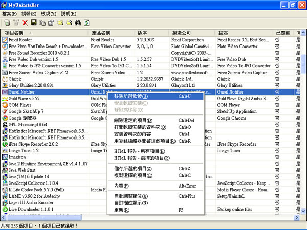 2.開啟MyUninstaller.exe主程式後,便會開始掃描Windows內所有已安裝的程式,且是繁體中文介面。