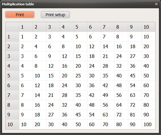 首頁教育學習數學 Multiplication Table - 九九乘法表自己印 「九九乘法表」大概每個人都背過吧!若想要協助家中小孩背誦「九九乘法表」可以透過 free Multiplication Table 這套軟體自行來列印,不限 1到 9,若覺得想要背得更多,該軟體支援到 999,不過應該很難背的完成。 🔔 不錯過任何精彩! 立即訂閱我們的 LINE 官方帳號 每次發佈新文章時,您將會第一時間收到本站文章連結通知,輕鬆掌握最新資訊! 使用 LINE 追蹤文章更新 §相關文章,還可以參閱:Math Bot:GPT-4o 支援的 AI 數學求解器,提供詳細解題步驟Mathic:免費線上加減乘除運算式組合練習平台,挑戰四則運算極限AI Math:免費數學學習AI工具,詳列解題過程並提供解說Microsoft Math Solver 代數、三角函數及微積分等數學題目的最佳解題工具,不僅有答案、步驟還會出練習題「算術題、口算題在線生成器」快速產生加、減、乘、除數學練習題目 如何使用 Multiplication Table? 1.完成安裝,開啟 Multiplication Table 後,預設的初始值是 1 到 10的乘法表,Table Size 可調整表格的大小。 2.點擊[Create multiplication table]便會建立表格,可透過點擊[Print]來列印。 3.可透過第一個介面來調整要呈現的乘法表。 Multiplication Table語言:英文性質:免費適用:Windows官方網站:http://freemathcalculator.com/multiplicationtable.html下載:(該軟體遭 Chrome 瀏覽器判定為不安全,如果要下載,請到官網)