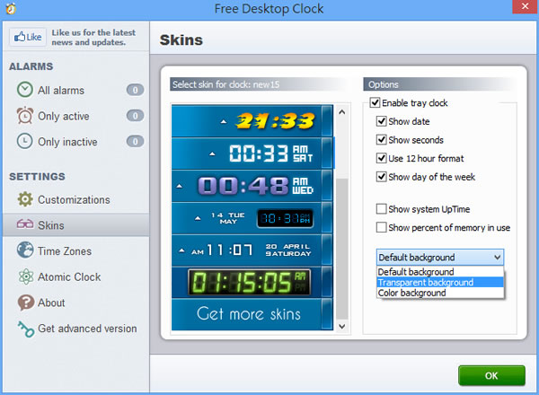 首頁電腦軟體系統應用 Free Desktop Clock 更換 Windows 預設的日期/時間樣式 Free Desktop Clock 是一套可更換 Windows 右下角所預設日期/時間樣式的免費工具,若覺得 Windows 預設的日期時間樣式實在千篇一律、平淡乏味時,可以來試試。 🔔 不錯過任何精彩! 立即訂閱我們的 LINE 官方帳號 每次發佈新文章時,您將會第一時間收到本站文章連結通知,輕鬆掌握最新資訊! 使用 LINE 追蹤文章更新 §相關文章,還可以參閱:CatLock:可鎖定鍵盤的 Windows 應用程式,防止寵物意外觸碰Zen Ad blocker 瀏覽器與應用程式均適用的廣告攔截器,免費且開放原始碼TimVer 一站式顯示 Windows 版本及電腦硬體相關訊息的工具「微軟電腦管家」內含開機啟動項目管理、儲存空間最佳化等免費工具 全方位提升電腦效能Windows Startup Timer 測量 Windows 從開機到完全啟動所需時間 如何使用 Free Desktop Clock? 1.下載並完成安裝,開啟 Free Desktop Clock 後,便可在右下角的日期/時間區域,看到 Free Desktop Clock 所預設的時間樣式,使用右鍵點擊便可以開啟功能表,點擊[Main Dialog...]。 2.在介面的左側欄中的 ALARMS 為要付費的功能,右側欄中免費版本預設有 九個樣式可供選擇。 Free Desktop Clock語言:英文性質:免費適用:Windows官方網站:http://www.drive-software.com/freedesktopclock.html下載:按我下載