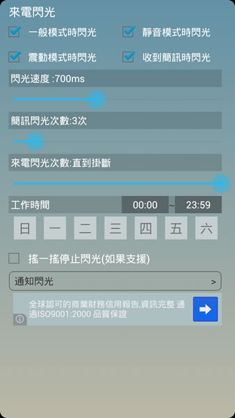 首頁移動設備系統應用 來電閃光 - 讓手機在有人來電時發出閃光燈 當手機有來電時,通常會使用鈴聲或是使用震動的方式來通知手機的使用者,除了這兩種的方式外,現在你也可以利用手機的閃光燈,當有來電時,也可以閃光來通知,透過「來電閃光」這個 Android 應用程式,便能讓手機擁有多樣化的閃光通知,包含一般、震動、靜音與收到簡訊時並搭配工作時間來靈活設定與運用。 🔔 不錯過任何精彩! 立即訂閱我們的 LINE 官方帳號 每次發佈新文章時,您將會第一時間收到本站文章連結通知,輕鬆掌握最新資訊! 使用 LINE 追蹤文章更新 §相關文章,還可以參閱:「Android」如何關閉或開啟「智慧助手」?[ Android ]如何更改預設的瀏覽器?如何使用 Android 系統中內建的 VPN 功能進行 VPN 連線?如何查詢 Android 系統上的 Edge、Chrome 瀏覽器是 32還是 64位元?如何開啟 Android 系統內隱藏的「開發人員選項」功能,方便手機調校? 如何使用來電閃光? 1.完成安裝,開啟「來電閃光」設定介面,可以按照自己的需求來勾選調整與設定。 2.點擊[通知閃光]可以進入更進階的設定;要使用閃光通知,需開啟協助工具->通知閃光服務。 來電閃光APP性質:免費安裝網址:Android 按我前往