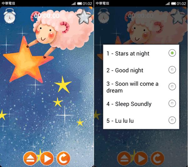 首頁移動設備生活資訊 催眠曲嬰兒- 內建五首催眠曲,可設定播放時間,可離線使用 對家中有嬰幼兒要照顧的爸媽而言,想要哄其睡覺,有時還是要花些功夫的,所以很多人會購買音樂盒放一些催眠歌曲,來幫助嬰幼兒的入眠。「催眠曲嬰兒」是一個可離線播放催眠曲的 Android 應用程式,內建有 Stars at night、Good night、Soon will come a dream、Sleep Soundly 及 Lu lu lu 五首的催眠歌曲,並可設定單一催眠曲不斷重複或五首輪播,還有可設置到達所設定的播放的時間後,自動停止,避免還要額外起床關機。 🔔 不錯過任何精彩! 立即訂閱我們的 LINE 官方帳號 每次發佈新文章時,您將會第一時間收到本站文章連結通知,輕鬆掌握最新資訊! 使用 LINE 追蹤文章更新 §相關文章,還可以參閱:停車不再靠運氣!用 LINE「雞來客棧_GLike」機器人 3秒快速找車位Google Play 公布 2023 年度最佳遊戲及應用程式榜單「中央氣象局E-地震測報」APP即時掌握地震動態手機開啟 Google 搜尋「Pac-Man」就讓 Hello Kitty、小精靈、布丁狗及動漫人物以 3D 出現在現實環境中手機開啟 Google 搜尋動物名稱,就可利用 AR 技術將其融入到現實環境中 如何使用催眠曲嬰兒? 1.開啟 催眠曲嬰兒 Android 應用程式後,可點擊下方中間的播放按鈕圖示,開始播放;若要選擇催眠曲可點擊下方最左側的圖示按鈕來選擇。 2.最右側的按鈕,為設定單一或五首催眠曲重複播放;另外想要設置播放時間,可點擊左上側的鬧鐘圖示來設定。 催眠曲嬰兒APP性質:免費官方網站:https://play.google.com/store/apps/details?id=com.zodinplex.lullaby.sleep.babies安裝網址:若在 Google Play 已下架,可以在這裡試試!
