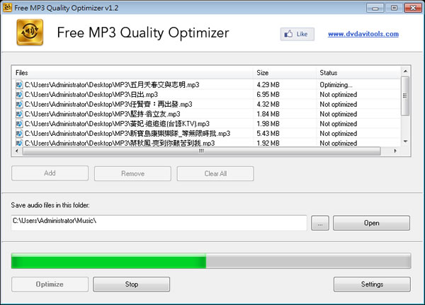 首頁電腦軟體影音視聽 Free MP3 Quality Optimizer - MP3 音量、品質調整工具 2015-1-20 更新:版本更新至 v1.5 對於來源不一的 MP3 檔案,可能會因當初轉換所用的參數不同而造成音量、音質的不同,想要改進這些問題,可以來使用 DVDAviTools Free MP3 Quality Optimizer 這套可針對 MP3 的音量、BitRate 做調整的工具,讓聽 MP3 時,音量、音質都能統一,免去每首音樂都要調整的困擾。 🔔 不錯過任何精彩! 立即訂閱我們的 LINE 官方帳號 每次發佈新文章時,您將會第一時間收到本站文章連結通知,輕鬆掌握最新資訊! 使用 LINE 追蹤文章更新 §相關文章,還可以參閱:超實用免費軟體!DCP-o-matic 讓你的影片變成電影院 DCP 播放格式語音轉文字免費工具 AsrTools 輕鬆搞定字幕、筆記或歌詞整理免費的 PotPlayer 開始搭載 Whisper AI,讓你即時生成字幕與翻譯,外語影片輕鬆看SpleeterGUI:簡單易用的 AI 音軌分離免費開源工具如何使用 Microsoft Clipchamp 自動產生影片字幕? 如何使用 DVDAviTools Free MP3 Quality Optimizer ? 1.完成安裝,開啟 DVDAviTools Free MP3 Quality Optimizer 後,點擊[Add]來加入要調整的 MP3 檔案。 2.接下來,點擊右下角[Settings]來開啟設定頁面,並適時的調整每項參數。 3.點擊[Optimize]便可開始最佳化。 DVDAviTools Free MP3 Quality Optimizer版本:1.5語言:英文性質:免費適用:Windows官方網站:http://www.dvdavitools.com/下載:按我下載