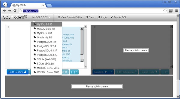 首頁線上工具開發工具 SQLFiddle.com 線上練習 SQL 語法網站,支援My SQL、MS SQL、SQLite、Oracle 資料庫對企業在資訊化的應用扮演著相當重要的角色,從免費的 My SQL、SQLite 到須付費的 Access、MS SQL、Oracle 資料庫應有盡有,這些關聯式的資料庫其共同的特色就是都支援 SQL(Structured Query Language)語法,且前端所應用的軟體開發語言也幾乎都支援 SQL 語言的呼叫與執行,因此要開發資料庫應用程式,便要會下基本的 SQL 語句(Create、Drop、Alter、Select、Insert、Delete、Update......,可參考 w3schools),與整合語句像是Trigger、View、Stored Procedure 以及 Function 的等等的應用。想要學習 SQL 語法,現在不用大費周章去安裝資料庫來練習了,透過 SQLFiddle.com 這個網站便可以來練習 SQL基本語法,且提供 My SQL、MS SQL 2008 及 2010、SQLite、Oracle 11g R2 等多版本可供選擇。 🔔 不錯過任何精彩! 立即訂閱我們的 LINE 官方帳號 每次發佈新文章時,您將會第一時間收到本站文章連結通知,輕鬆掌握最新資訊! 使用 LINE 追蹤文章更新 §相關文章,還可以參閱:網站效能健檢免費工具!PageTest 多裝置模擬效能分析及由 AI 提出改進建議Regex-Vis 圖解正則表達式的線上工具,可編寫還可驗證Sitemap Generator:線上快速產生符合 SEO 標準的網站地圖,無網址數量限制適用各類型網站網站隱私權政策產生器 Privacy Policy Generator:輸入網站名稱和網址即可輕鬆生成專屬條款Frame0:輕鬆繪製應用程式流程圖、UML 和介面雛形的免費工具,適用於 macOS 與 Windows 如何使用 SQLFiddle.com? 1.使用瀏覽器進入 SQLFiddle.com 網站,先選擇所要練習的資料庫與其版本。 2.可點擊[View Sample Fiddle]來協助載入範例,稍加修改,便可加快後續的相關練習。 ※修改過的 SQL語法(左側欄),需點擊[Build Schema]來檢查語法,如果語法沒錯,其下會顯示[Schema Ready]。 接下來到右側欄,點擊[Run SQL]來執行※ SQLFiddle.com網站網址:http://sqlfiddle.com/