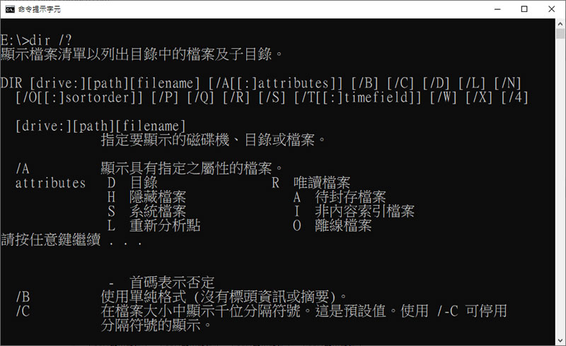首頁操作技巧Windows 指令 [ 命令提示字元 ]如何製作目錄中的資料夾與檔案清冊? 當有需要列印出所在目錄路中的所有資料夾與檔案時,很多人會尋求第三方軟體來解決,但,其實在 Windows 作業系統中就有內建的指令可以來完成這個需求,使用者只需要開啟「命令提示字元」利用 DIR 指令就可以將目前所在路徑內包含資料夾與檔案製作成一份文字檔格式的清冊。 🔔 不錯過任何精彩! 立即訂閱我們的 LINE 官方帳號 每次發佈新文章時,您將會第一時間收到本站文章連結通知,輕鬆掌握最新資訊! 使用 LINE 追蹤文章更新 §相關文章,還可以參閱:如何在 Windows 中一次建立多個資料夾如何在 Windows 中使用 PowerShell 列出軟體安裝與解除安裝記錄如何使用「命令提示字元」或「PowerShell」指令取得目前 CPU 溫度?「命令提示字元」如何使用指令執行 SSD 硬碟速度測試?「Windows PowerShell」如何將指令結果直接輸出成文字檔? 如何製作目錄中的資料夾與檔案清冊? 1.開啟「命令提示字元」後,可以利用 CD 指令,來切換到要製作的目錄,如果不知道指令的用法可以輸入 CD /? 列出使用說明。 2.切換不同路徑的指令,例如要到 f 磁碟機,可以使用 cd /d f:\ 指令 3.到達所在目錄後,輸入 dir>list.txt 指令並按下鍵盤[ Enter ],便會產生一份清冊在所在的目錄中,檔名就是 list.txt。 4.要了解 dir 指令的詳細用法,同樣可以使用 dir /? 指令來查詢。