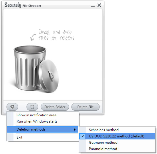 首頁電腦軟體資訊安全 Securely File Shredder 徹底刪除檔案,免除被還原的風險 大家都知道,在 Windows 作業系統中,若是使用資源回收筒來刪除檔案時,通常都可以利用檔案救援軟體找回來,也正因為如此,明明都已刪除的檔案,還是會有外流的風險,雖說,要救回刪除的檔案,不見得要靠救援軟體,但是針對資安的環節,因該是警慎在警慎,特別是對重要的檔案。想要徹底將檔案刪除,可以來使用 Securely File Shredder 這套免費軟體,其提供包含 Department of Defence (DoD) 在內的四種抹除檔案模式,徹徹底底地將檔案刪除,免除被還原的風險。 🔔 不錯過任何精彩! 立即訂閱我們的 LINE 官方帳號 每次發佈新文章時,您將會第一時間收到本站文章連結通知,輕鬆掌握最新資訊! 使用 LINE 追蹤文章更新 §相關文章,還可以參閱:PDFEncrypt 替 PDF 檔案加入禁止列印、注釋、複製、修改及開啟密碼等保全限制WHDownloader 微軟 Office及 Windows 更新檔下載器Free Virtual Keyboard 虛擬鍵盤免費軟體 (螢幕小鍵盤)BlankAndSecure 讓刪除的檔案無法被還原[ Windows Server ]如何使用 win-acme 申請 Let's Encrypt SSL 並安裝到 IIS? 如何使用 Securely File Shredder? 1.下載時,需先下載 CNET 的下載器,當使用該下載器開始下載 Securely File Shredder 時,須注意勾選,預設會安裝不相關的軟體,請注意! 2.開啟 Securely File Shredder 後,可點擊左下角的齒輪設定圖示,來選擇檔案抹除的模式,要刪除時,也只需將檔案或資料夾使用滑鼠拖到介面內即可。 Securely File Shredder語言:英文性質:免費適用:Windows官方網站:http://www.securely.co/index.aspx下載:按我下載