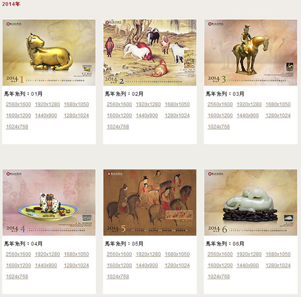 首頁電腦軟體視窗桌面 故宮博物院 - 2014年馬年系列靜態月曆桌布免費下載 由國立故宮博物院所提供的 2014年以「馬」年為主題的靜態月曆桌布現在已可免費下載,每一個月為一張桌布,每張桌布均提供 2560x1600、1920x1280、1680x1050、1600x1200、1440x900、1280x1024、1024x768等尺寸供你免費使用。 🔔 不錯過任何精彩! 立即訂閱我們的 LINE 官方帳號 每次發佈新文章時,您將會第一時間收到本站文章連結通知,輕鬆掌握最新資訊! 使用 LINE 追蹤文章更新 §相關文章,還可以參閱:Windows 官方桌布商店來了!超過 400 款風格包,從遊戲到國家公園通通有微軟 City Art Search 自動將 10400多幅世界名畫設置成 Windows 鎖定螢幕畫面Digital Clock 4 可靈活自訂的桌面時鐘,支援報時、計時器、鬧鐘等多款附加套件TrafficMonitor 在 Windows 桌面上顯示網路上傳與下載的即時網速「免費下載」故宮博物院 2023 兔年月曆桌布 如何下載故宮博物院 - 2014年月曆馬年靜態桌布? 1.使用瀏覽器進入「故宮博物院 - 2014年月曆馬年靜態桌布」網頁後,預設就會看到[靜態月曆桌布]。 2.點擊電腦適合的桌面解析度,下載回自己的電腦裡,在 Windows 8 或 8.1 要開啟該圖片,使用滑鼠右鍵點擊該圖片,在右鍵功能表,點擊[設成背景]便可更換桌面背景。 故宮博物院性質:免費官方網站:http://www.npm.gov.tw/zh-TW/Article.aspx?sNo=03001536