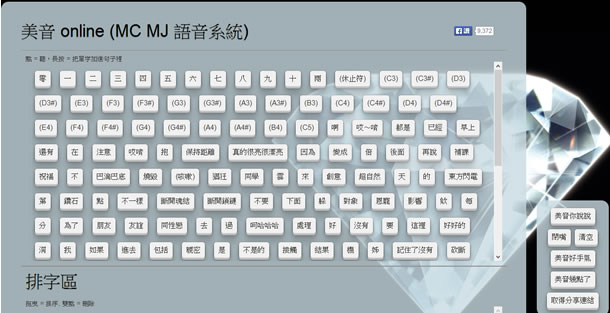首頁線上工具生活資訊 美音 online (MC MJ 語音系統) - 「美江」語音產生器 「人民有信仰宗教的自由」這是憲法明文規定的,不過同樣的宗教,有不同的信仰,若由不同的人來解釋,可能也就會產生不同的意涵,至於信不信呢?也還是要靠自己的判斷。最近,有網友去挖了一位名叫「郭美江」牧師的在傳教時候的演講影片,因為演說的內容牽扯到鑽石的來源,陸續在網路上被轉貼而爆紅起來,當然,隨之而來的就是批評聲浪,還有個「美音 online (MC MJ 語音系統)」將演說時的語音剪出多個句子,讓網友自行組合來播放,超級無敵了。 🔔 不錯過任何精彩! 立即訂閱我們的 LINE 官方帳號 每次發佈新文章時,您將會第一時間收到本站文章連結通知,輕鬆掌握最新資訊! 使用 LINE 追蹤文章更新 §相關文章,還可以參閱:Apple Music 台灣新用戶優惠:6個月免費暢聽,領取方式與限制一次看!2026春節追劇清單!Netflix 2月必看攻略:燒腦推理、火爆動作片,陪你從初一爽追到開工!459 萬人搶 60 萬份!運動幣中獎號碼公布,快查你的身分證尾數都馬一起GO!LINE GO新年優惠最高拿$800優惠券,還有一個月乘車金等你抽過年搭高鐵自由座要排多久?看LINE就知道 台灣高鐵×LINE TODAY推出春節限定燈號預估服務 如何使用 美音 online (MC MJ 語音系統)? 1.使用瀏覽器進入上述網址,就可以看到每個按鈕的名稱就是一個句子,點擊就能出聲。 2.若要組合成一句話,可長按將把單字加進排字區裡,組合後,可按右下方的[美音說說]來播放;[美因好手氣]可由系統隨意組合句子...等。 上述句子的 URL連結 3.美江牧師的演說影片。 4.網友作品。 美音 online (MC MJ 語音系統)網站網址:http://cornguo.atcity.org/test/mjcount/